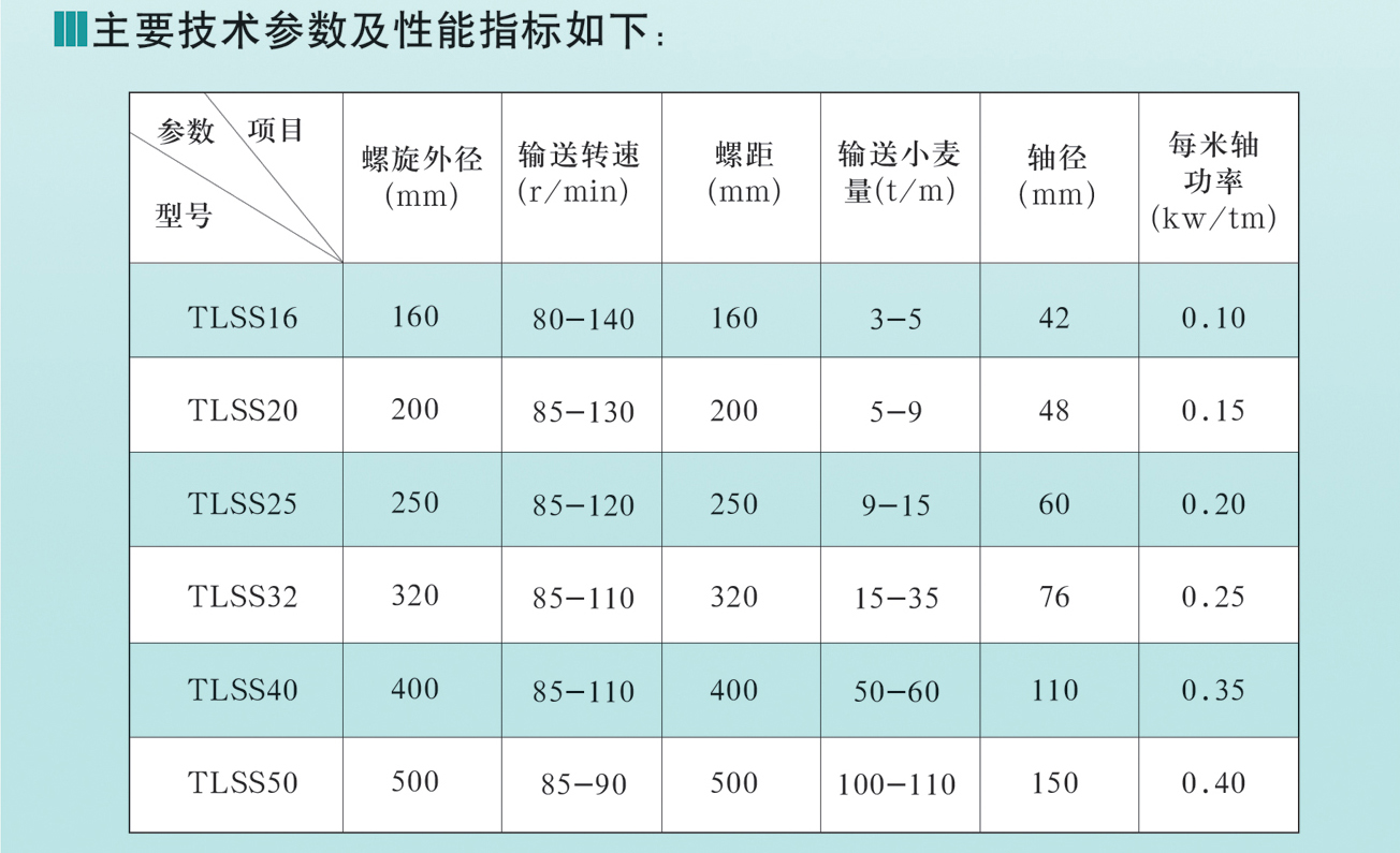 TLSS螺旋系列輸送機(jī)是固定式密封連續(xù)輸送機(jī)械設(shè)備。該設(shè)備借助螺旋葉片轉(zhuǎn)動(dòng)來(lái)推動(dòng)物料前進(jìn)。本設(shè)備具有占地面積小、密封性好、無(wú)粉塵、噪音小、結(jié)構(gòu)簡(jiǎn)單、工作穩(wěn)定可靠等特點(diǎn)。可地面安裝或懸掛安裝,可多點(diǎn)進(jìn)料和卸料,用于糧食、飼料、釀酒等行業(yè)。